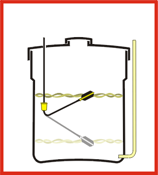 Se aconseja que este interruptor comande la bobina de un contactor menor de 50 Volts, para una total seguridad Primero realice una pequeña perforación en la tapa del tanque de un tamaño como para pasar el cable de conexiones del WL-500. Haga la perforación preferentemente del lado contrario a la entrada de agua. (vea los diagramas mas abajo) Regulación del Nivel de Llenado